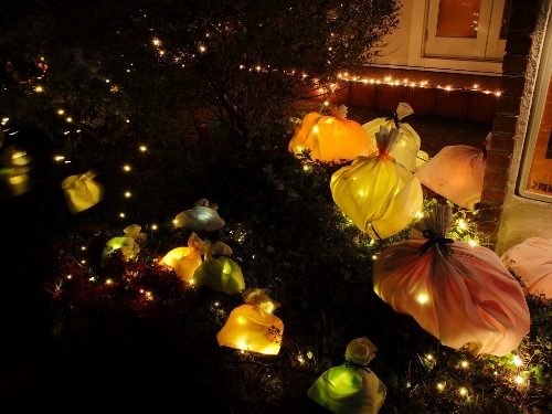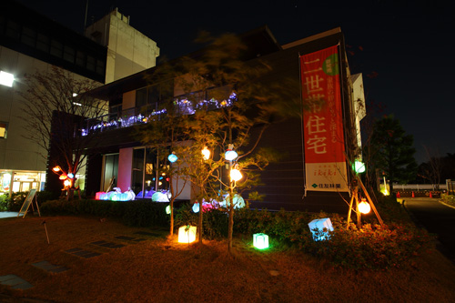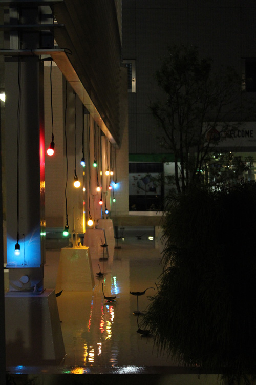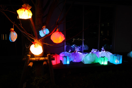 ![]() 寒色系のプレゼントボックスや大小様々な大きさの袋を住宅の庭やベランダに設置しました。 袋は常に光っているもの、点滅するもの、フェードで点灯するものなど点灯の仕方に種類を設けました。 |